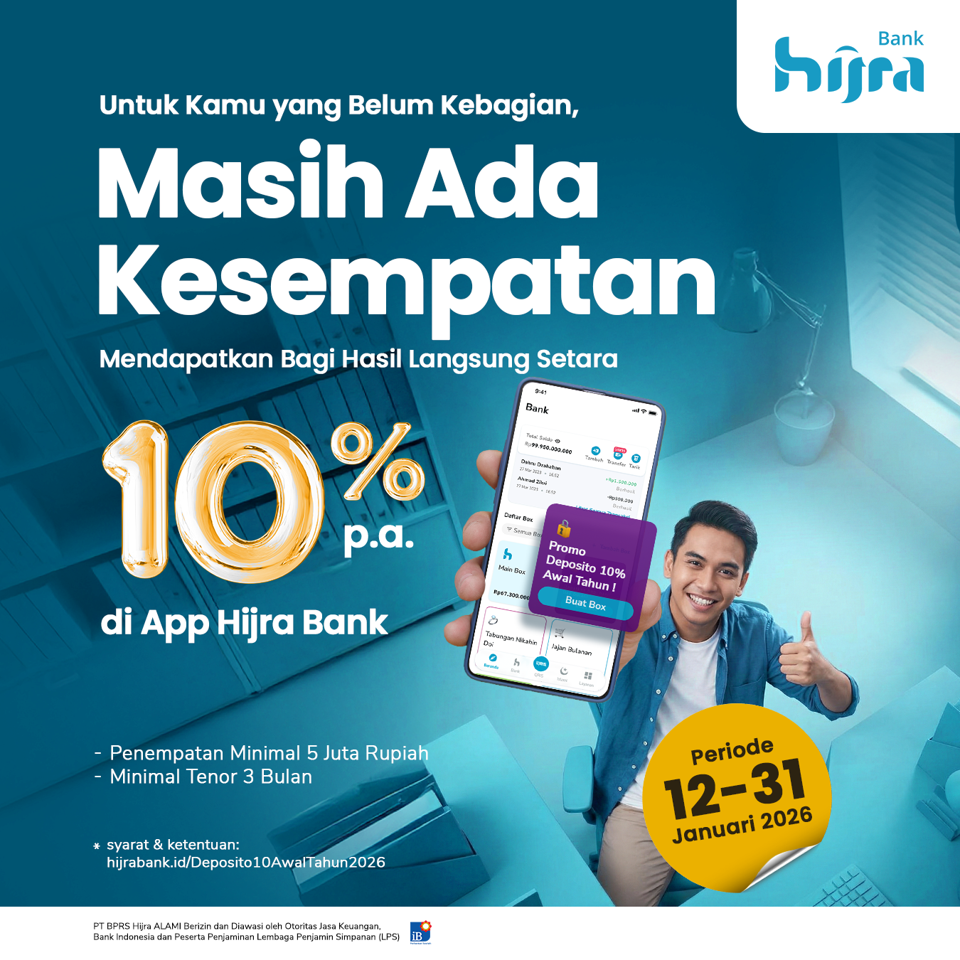 Saat ini, layanan deposito Hijra belum tersedia di luar Jabodetabek. Kamu tetap bisa mendaftar dengan mengirim dokumen secara manual.
